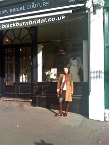 So it was that mid-morning last November I found myself alighting at Blackheath Station in south London with MoH to meet Mrs Adams. At this point, I must acknowledge, with grateful thanks, the work undertaken by the aforesaid Mrs Adams in organising what turned out to be a key event in the wedding planning journey. For having seen photographs of some of the wedding dresses I particularly admired, Mrs Adams had identified a number of key designers with stockists in London and had subsequently drawn up an impressive itinerary for the day which spanned both sides of the Thames. First stop was Blackburn Bridal in Blackheath, stockist of a wide range of designer dresses.