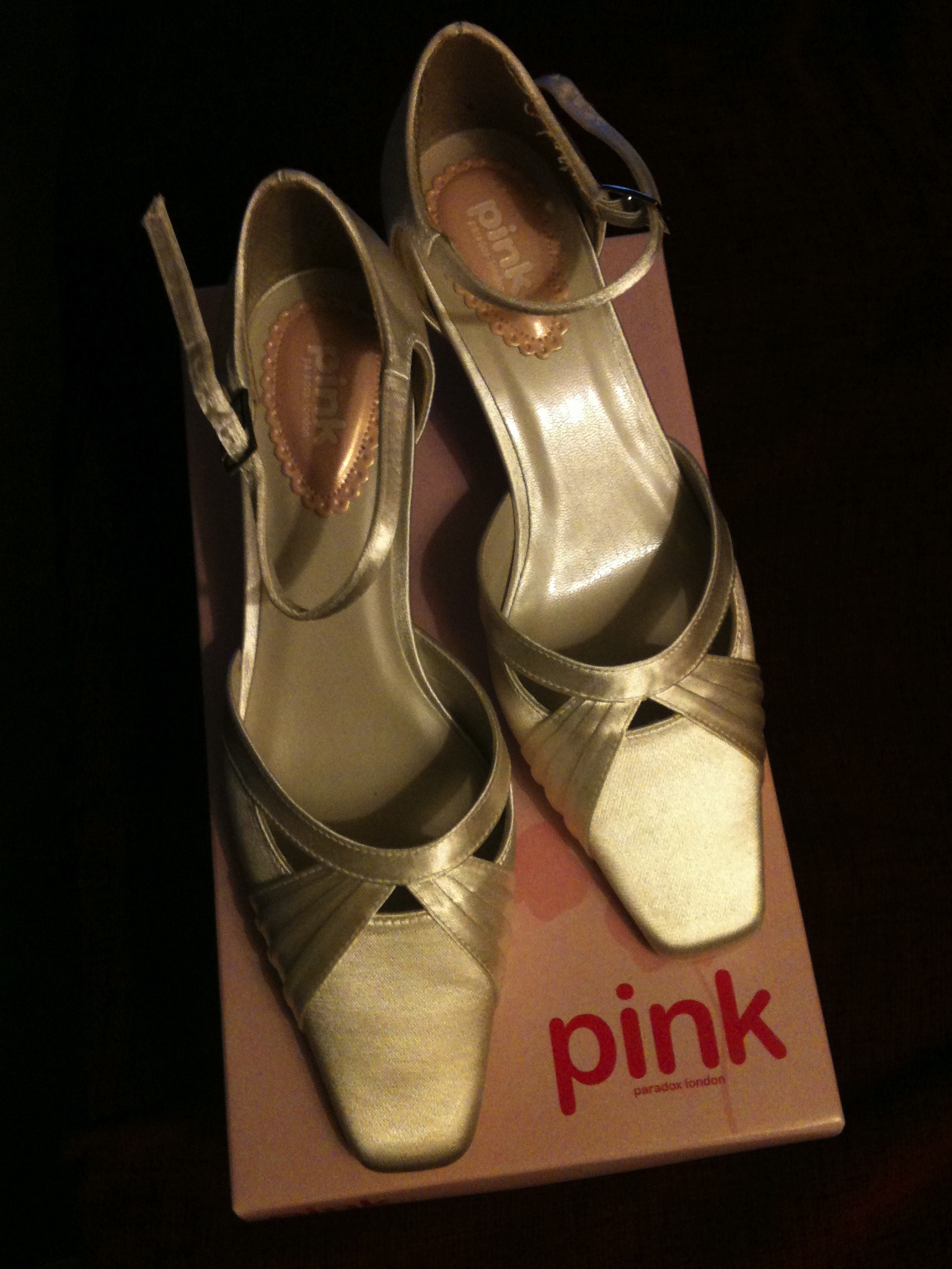 There is, of course, a happy ending to this story: I finally managed to get to Weddings 2Go, courtesy of my Dad, a couple of weeks ago and settled for a very elegant pair of shoes with a medium heel called Cotton by Pink which I will be taking with me next Tuesday when I return to Designer Alterations. Let’s hope it’s a case of third pair lucky.