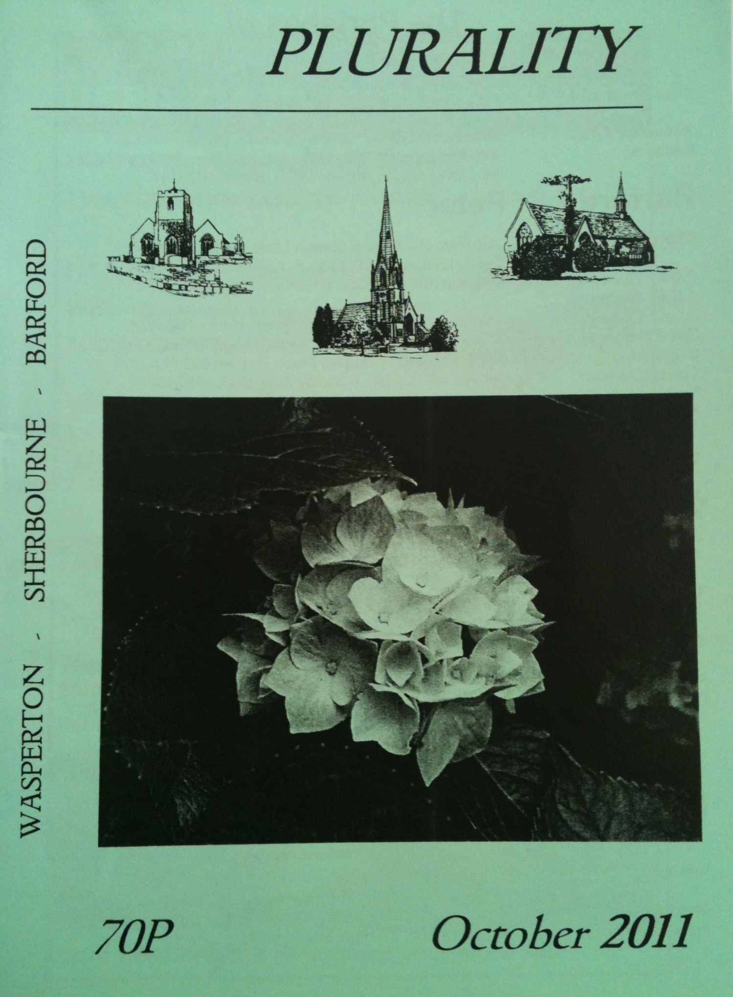 And, if I had any doubt at all that hydrangeas were the right flowers for an autumn wedding, they were completely blown away when I saw the front cover of the October 2011 edition of Plurality, the All Saints monthly church magazine. It was, as you can see, a photograph of a hydrangea head.